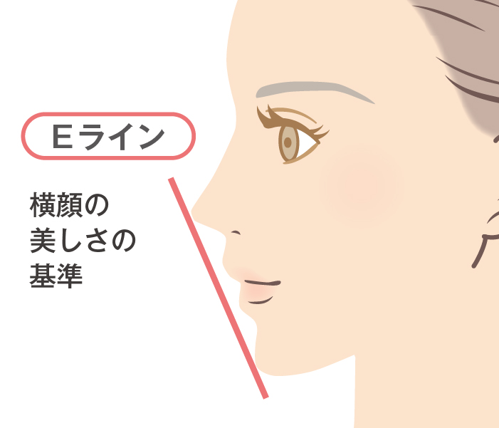 Eラインとは、横顔で鼻先、口先、顎先を直線で結んだラインのことで、口元がこのラインの内側に収まっていると美しいとされています。
